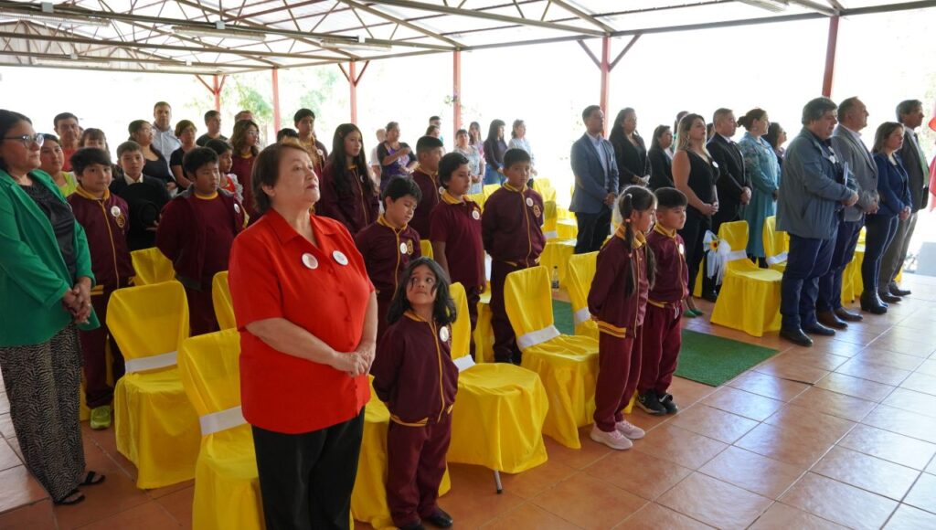 Estudiantes, docentes y asistentes de la educación de la Escuela Elba Carmona Hurtado de la localidad de El Arenal, del microcentro Elki de la comuna de Vicuña rindieron homenaje al natalicio 136° de la insigne poetisa, premio nobel y maestra rural Gabriela Mistral, en el Día de la Educación Rural, con alumnas relatando su biografía y declamando el poema “El ángel guardián”, otros danzando la porteña “Doña Gabriela” y cantando los poemas musicalizados “Obrerito”, “Dame la mano” y “En donde tejemos la ronda”.