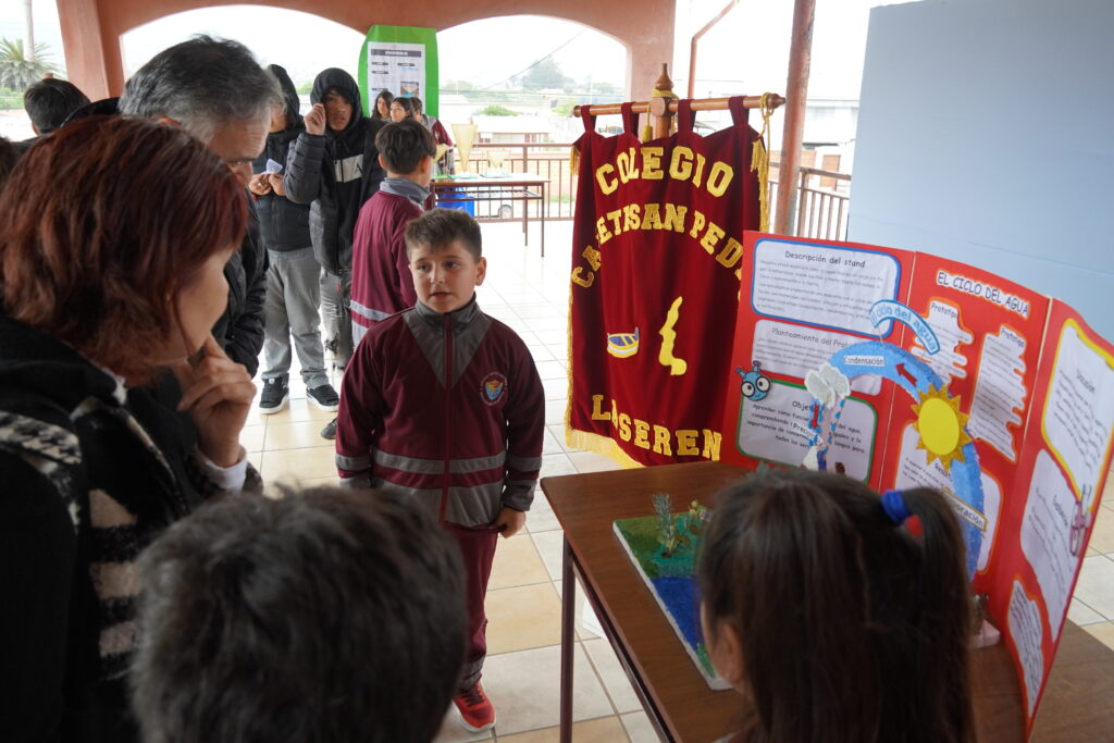 En tanto, el estudiante del colegio Caleta San Pedro, Tomás Yañez explicó “el ciclo del agua empieza en el mar y después cuando los rayos del sol le pegan, se hace la evaporación. Y después de eso viene la condensación. La condensación es cuando se forman las nubes. Y dentro de las nubes, hay miles de gotas. Y cuando se mezclan dos, las gotas de agua se hacen más grandes es una precipitación, que es cuando llueve. Y hay agua que se va a ríos, mares y lagos, y hay otra agua que se va a las capas subterráneas, que se infiltra”.