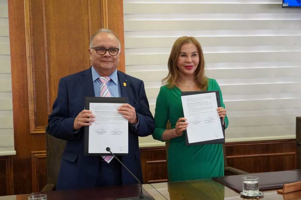 El director Ejecutivo del Servicio Local de Educación Pública Elqui, Pedro Esparza Olivares y la rectora de la Universidad de La Serena, dra. Luperfina Rojas Escobar firmaron un convenio de colaboración para fortalecer la educación pública de las comunas de La Higuera, La Serena, Vicuña y Paihuano, mediante acciones que beneficiarán a alrededor de 20 mil estudiantes de 112 establecimientos educacionales, que administra el SLEP Elqui.